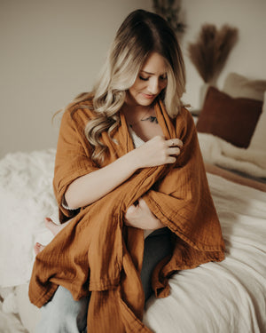 The shawl is so easy to maneuver by yourself. You can peek in and see baby, and it stays on well. The fabric is lightweight, breathable, and doesn’t get too hot in summer.