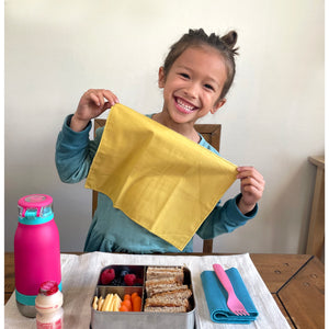 Ever try stuffing a formal dining napkin into your kid’s lunch box? Didn’t think so! That’s why we created Everyday Mini Napkins—perfectly sized, soft, absorbent, and reusable for school lunches and everyday clean-ups. They’re an easy, budget-friendly swap for paper napkins—gentle on skin, simple to wash, and made from Fairtrade-certified organic cotton.
